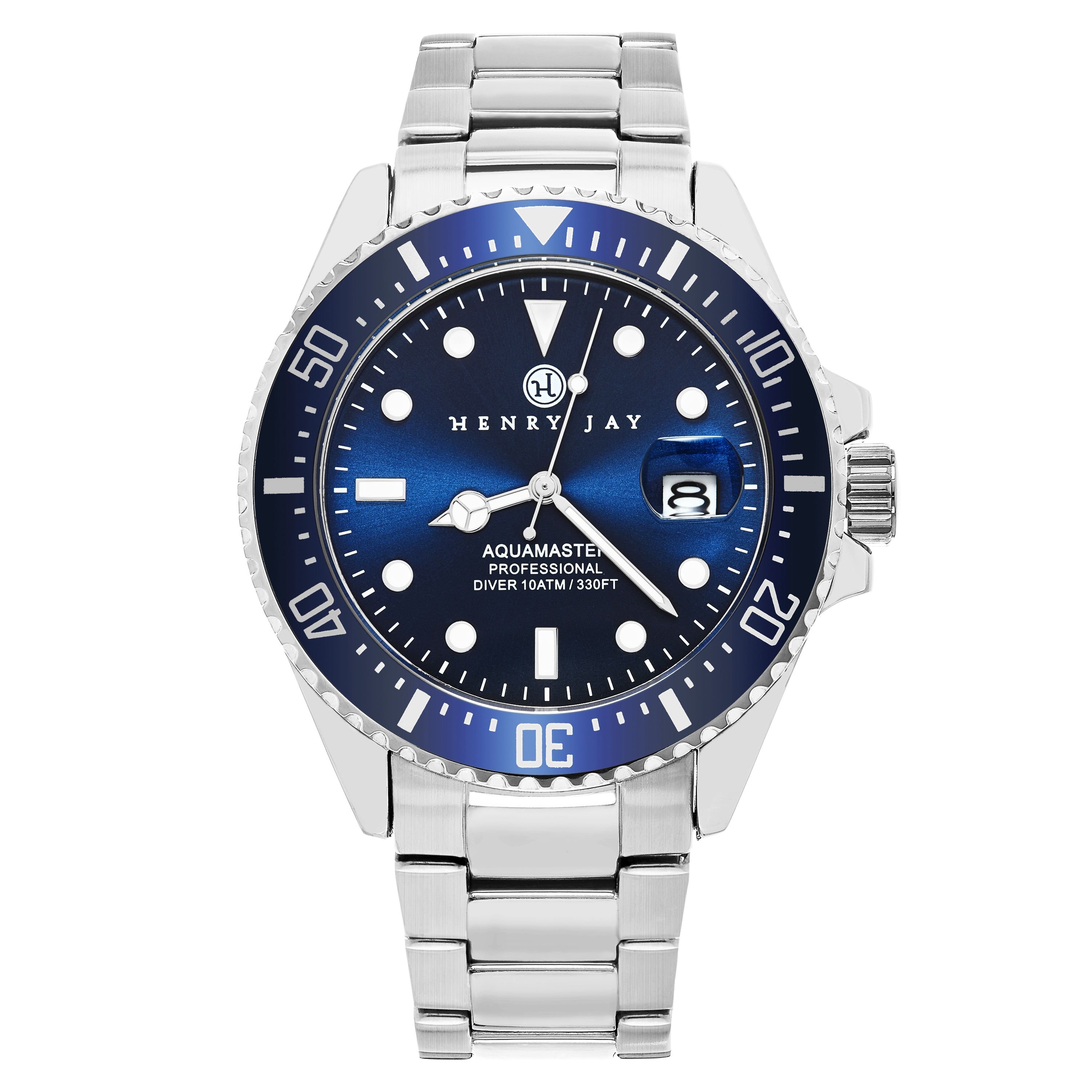 The Henry Jay Men's Aquamaster Dive Watch in Silver is ideal for casual, sporty, everyday.