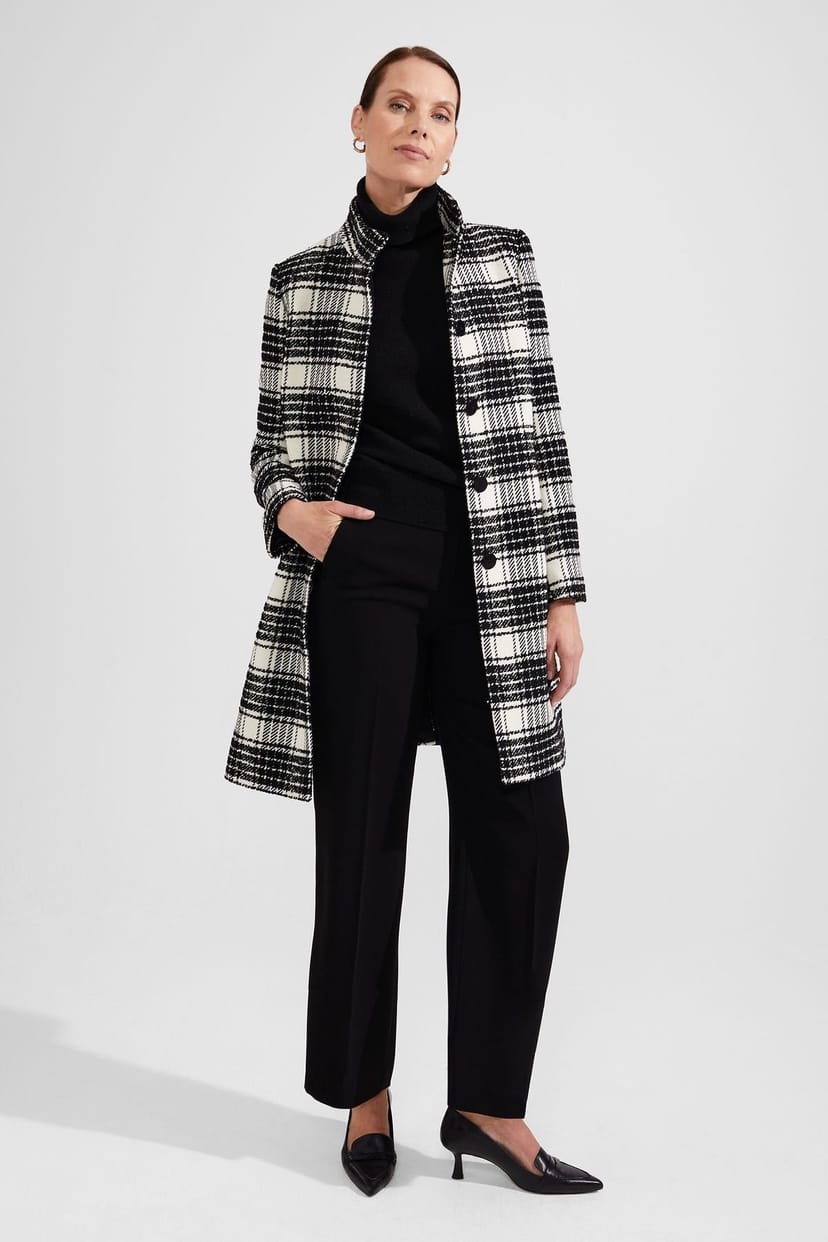 The Hobbs London Black Checked Coat with High Collar is ideal for casual, work, evening.