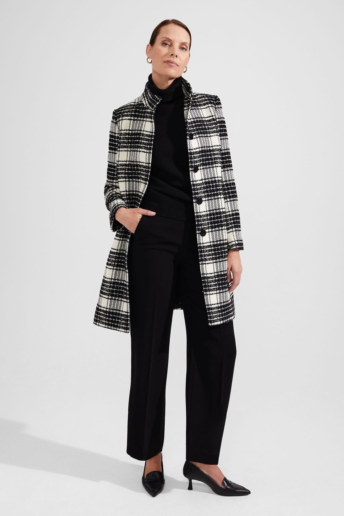 “Pair with black tailored trousers and black pointed-toe pumps for a sophisticated city ensemble.”