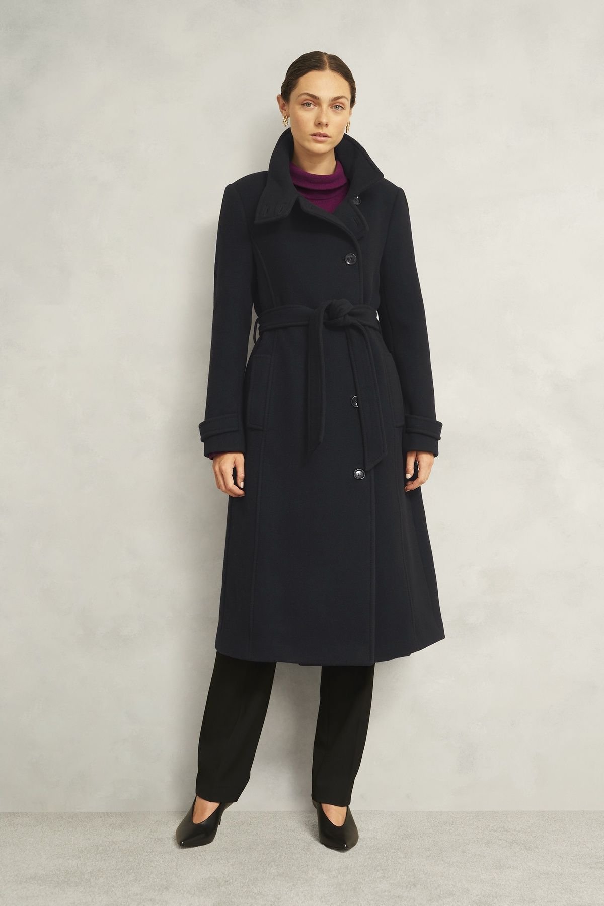 The Hobbs London Black Wool Blend Belted Coat is made from wool blend.