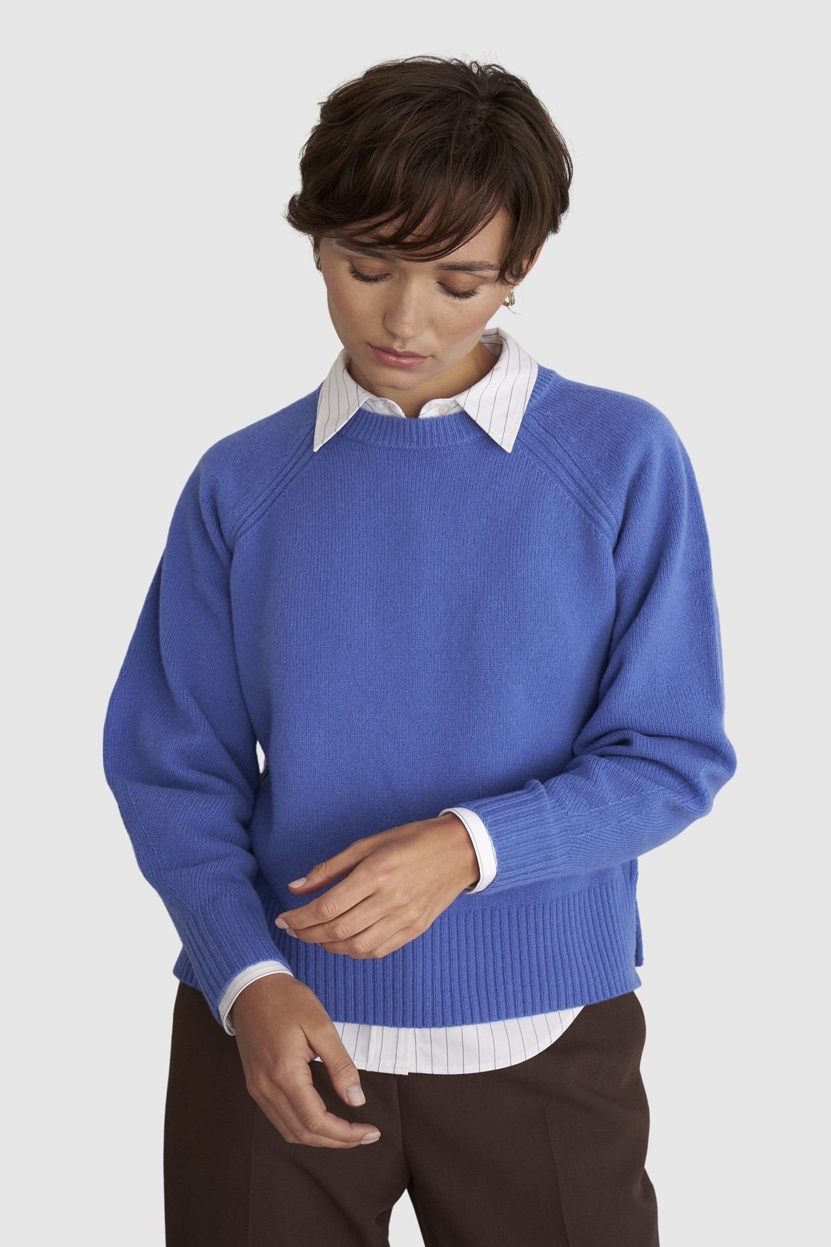 Relaxed-fit knitted jumper in cobalt with a crew neckline. Ideal for pairing with tailoring and denim for a casual yet polished look.