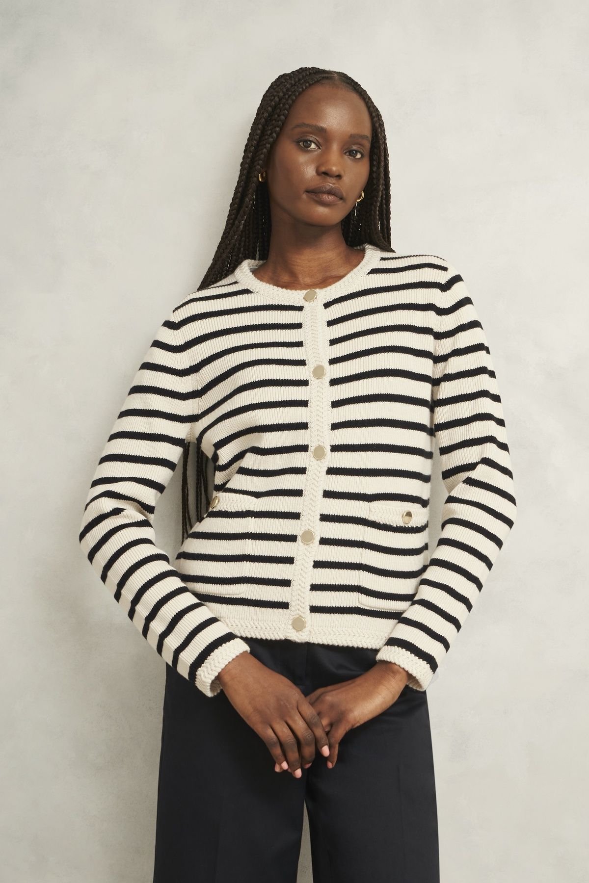 The Hobbs London Cream Striped Knitted Jacket is ideal for casual, everyday, work.