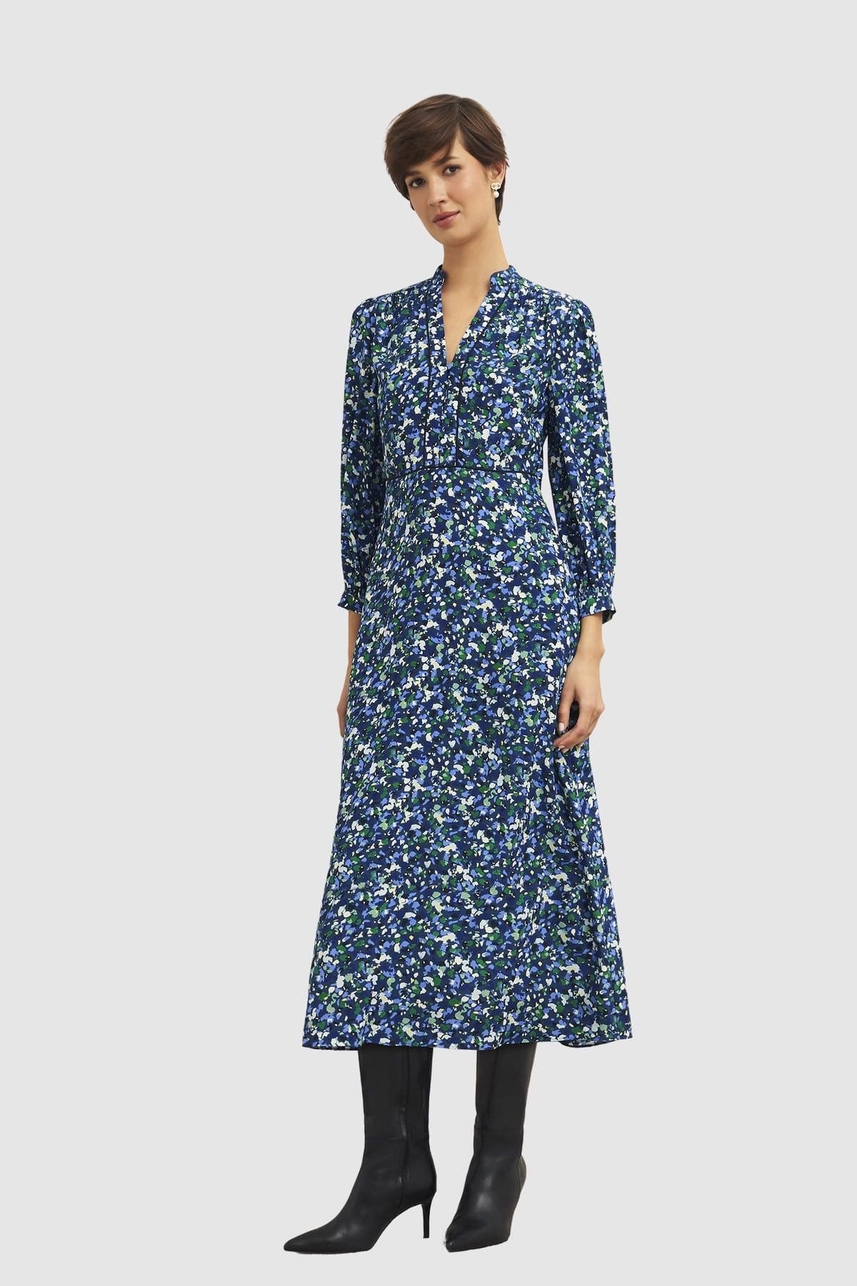 Hobbs LondonHobbs London Floral Midi Dress in Dark Blue