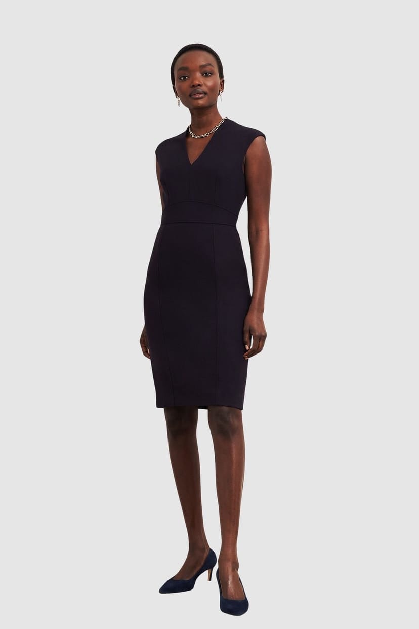 The Hobbs London Dark Navy V-Neck Sheath Dress is ideal for work, evening, business travel.