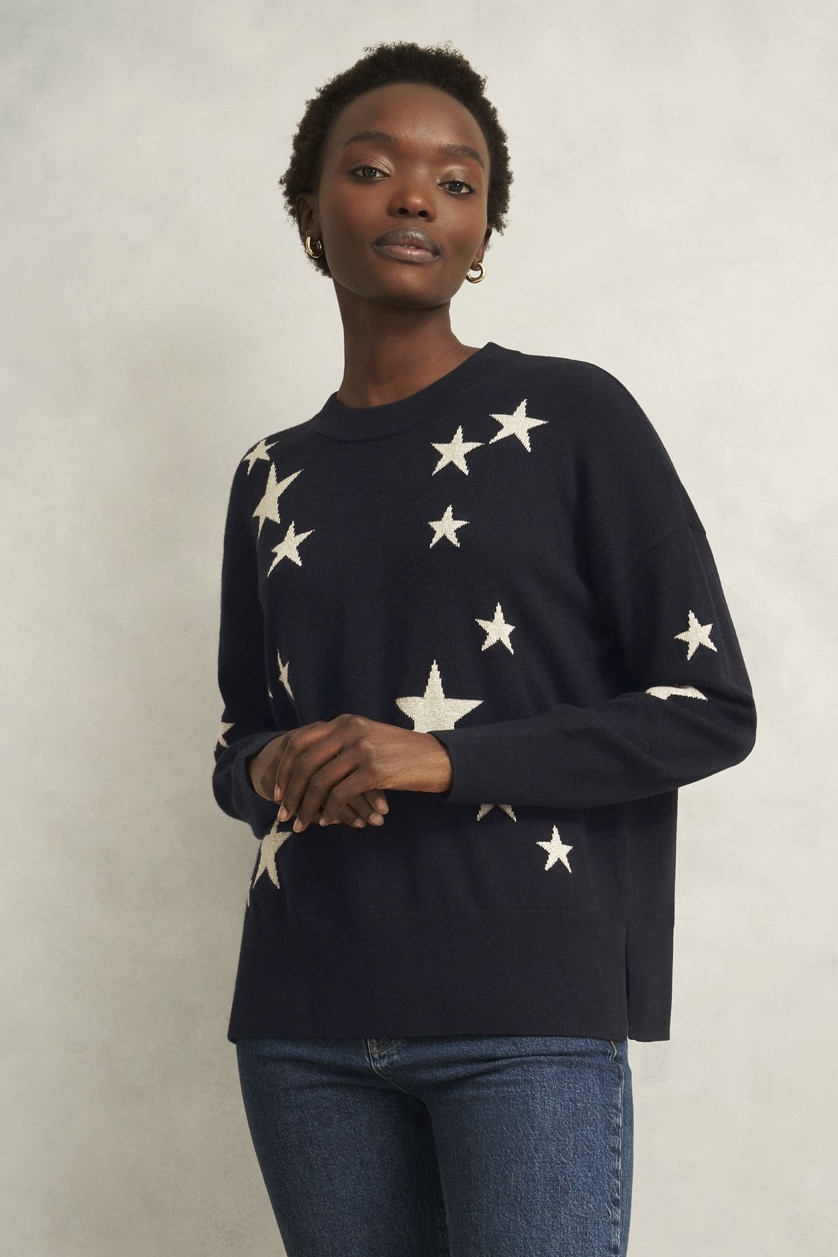 Elegant and cosy, the Arnelle Star Jumper elevates your casual wardrobe with vibrant star patterns, ensuring both comfort and style for seasonal wear.