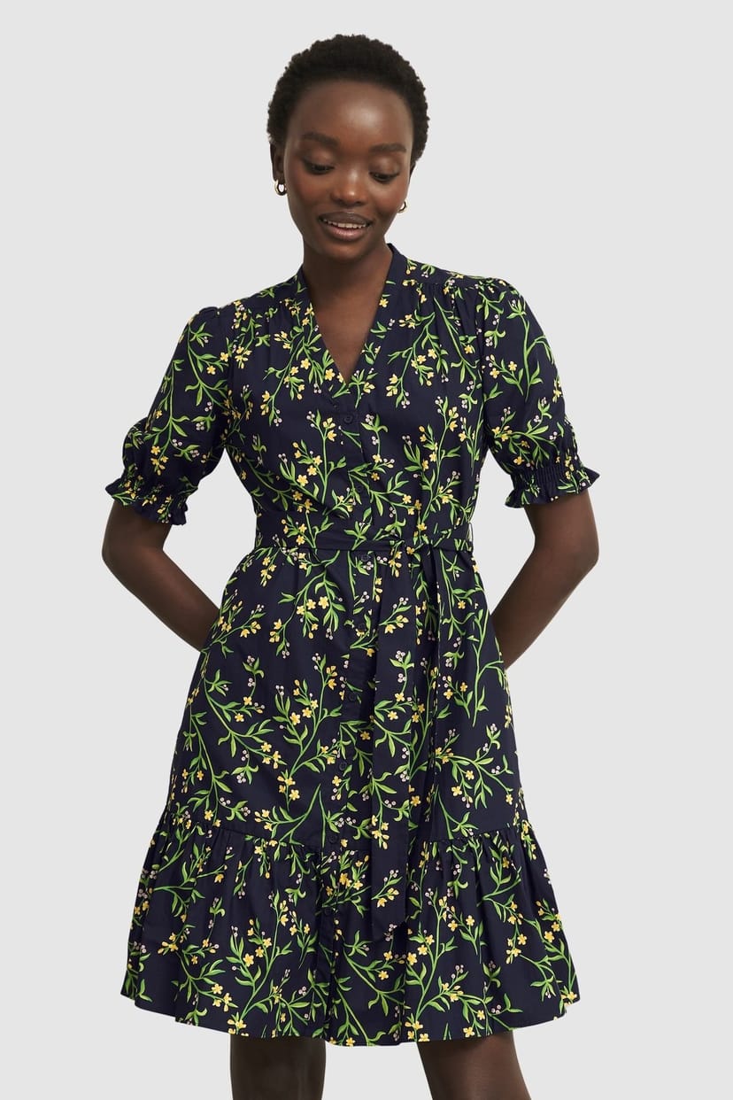 The Hobbs London Dark Navy Floral Mini Dress is ideal for casual, weekend, daytime.