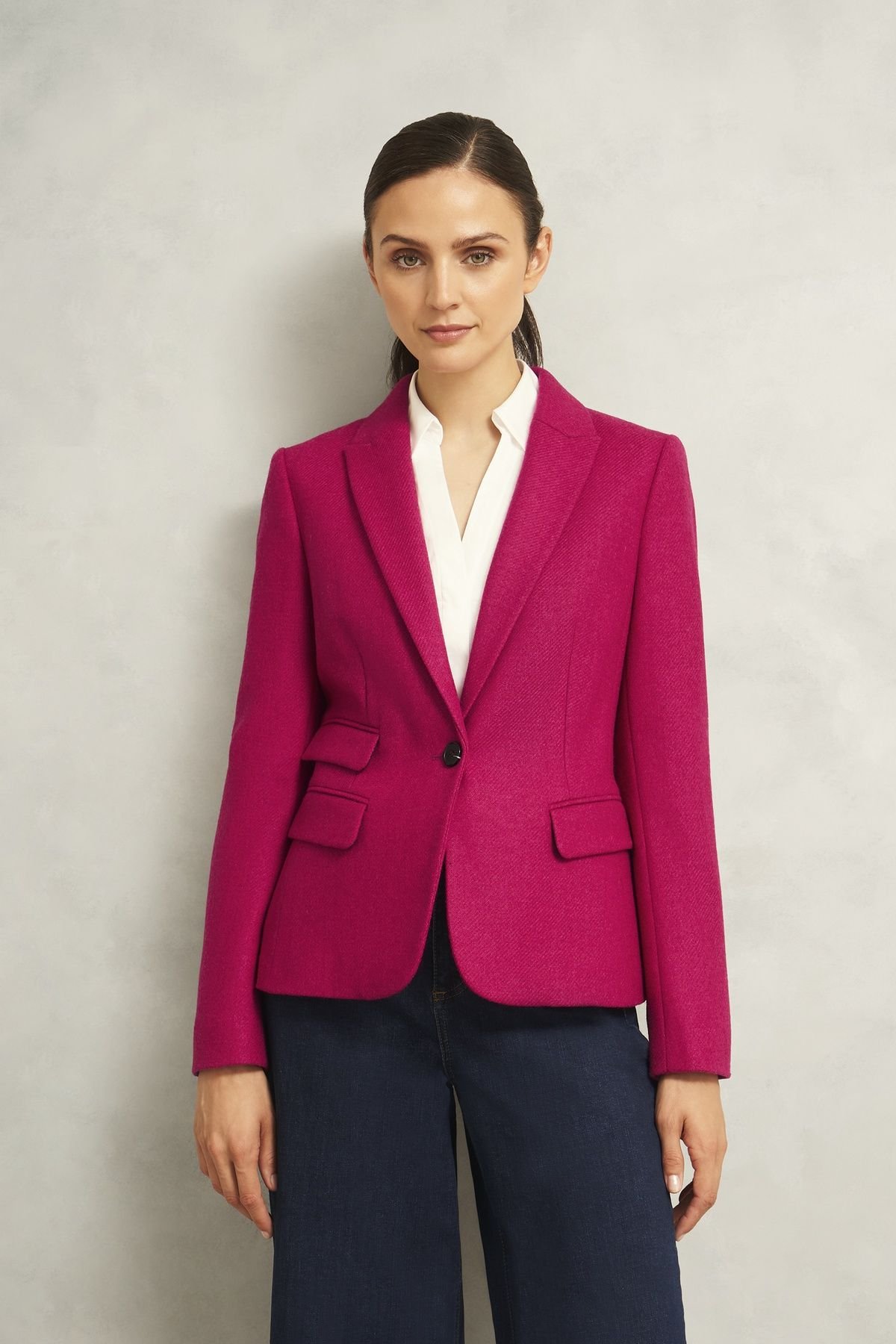 The Hobbs London Fuchsia Wool Blazer Jacket is ideal for work, casual, evening.