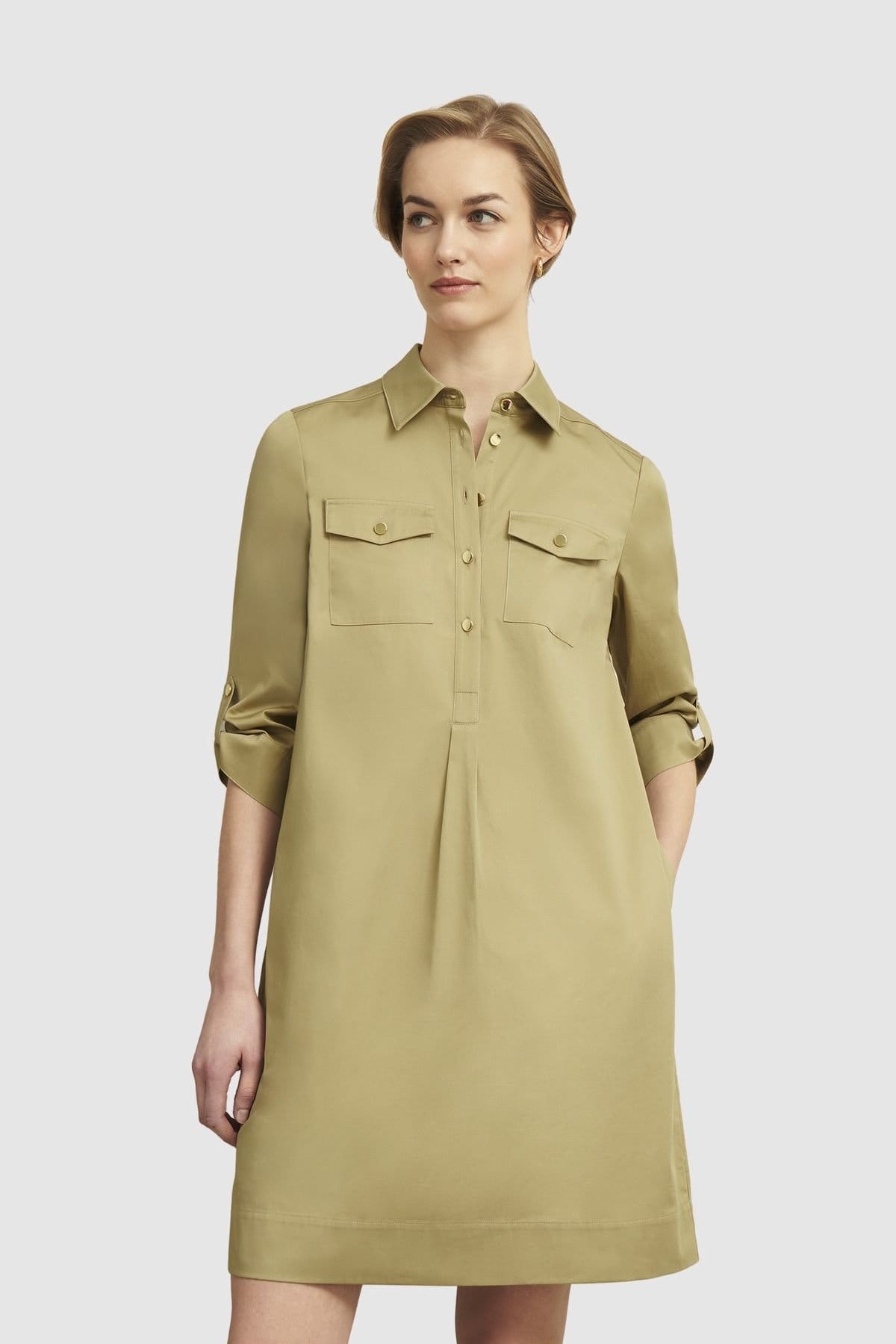 The Hobbs London Light Tan Collared Shirt Dress is made from cotton, polyester.