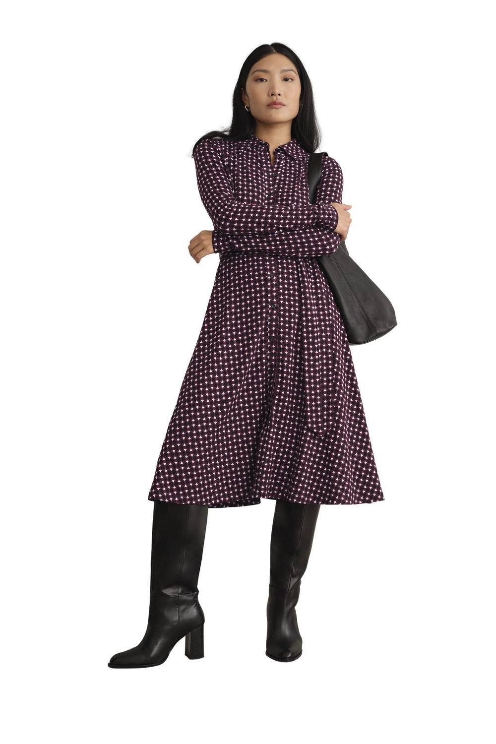 The Hobbs London Purple Printed Midi Dress is ideal for daywear, city outings, casual.