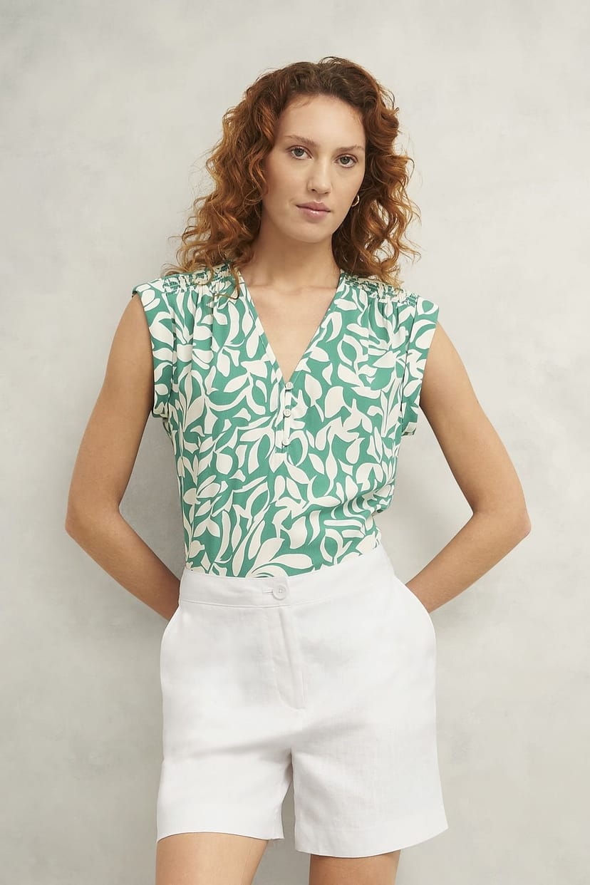 These Hobbs London shorts are crafted from breathable linen fabric, offering a high-rise tailored fit for a flattering silhouette. Perfect for warm days and weekend escapes.