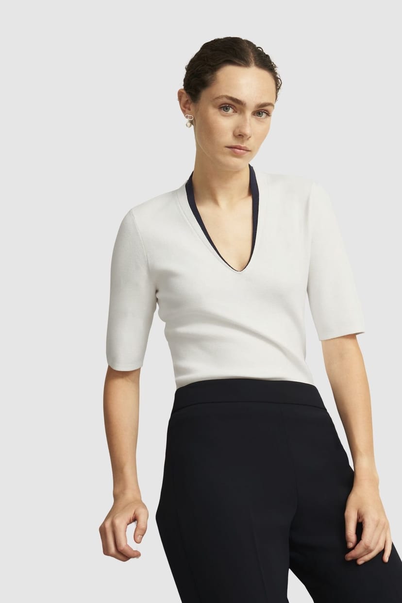 The Hobbs London Off-White V-Neck Knitted Top is ideal for work, evening.