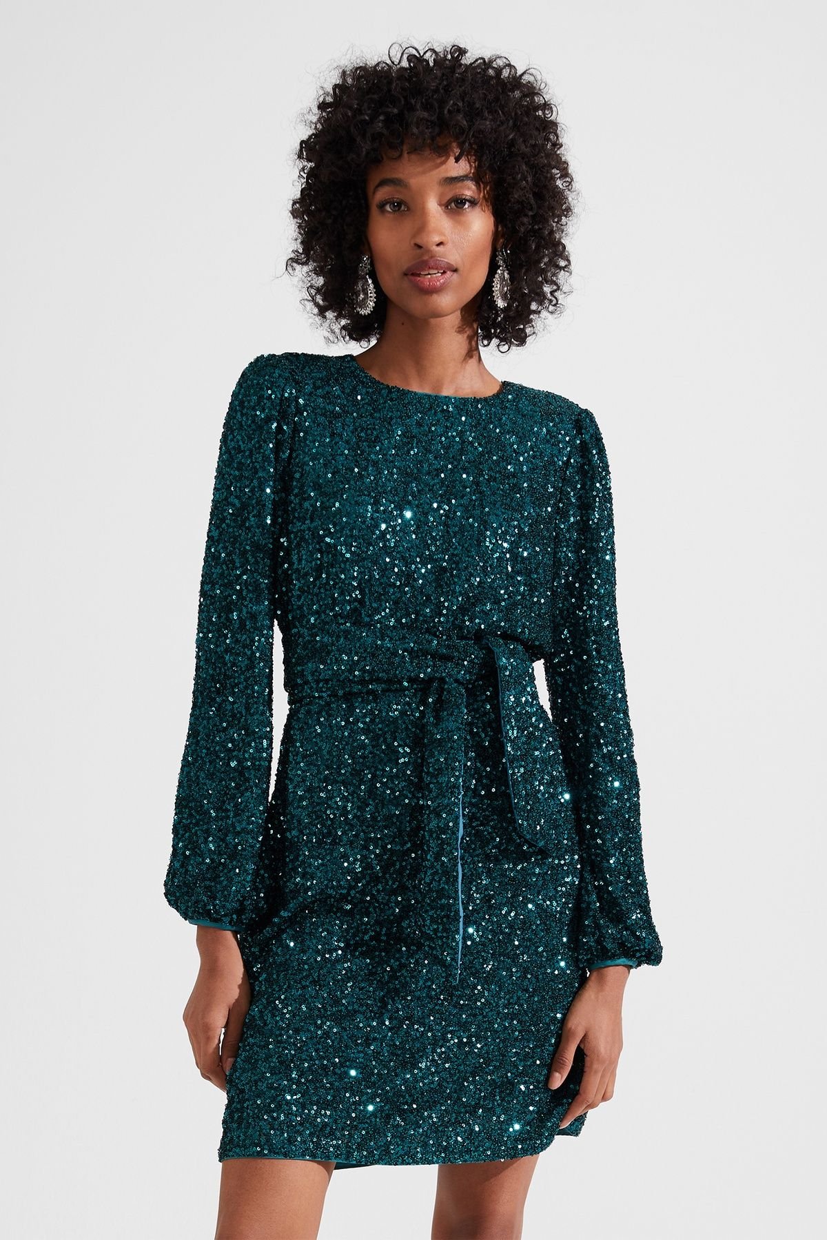 The Hobbs London Teal Sequin Mini Dress with Belt is ideal for evening, date-night, party.