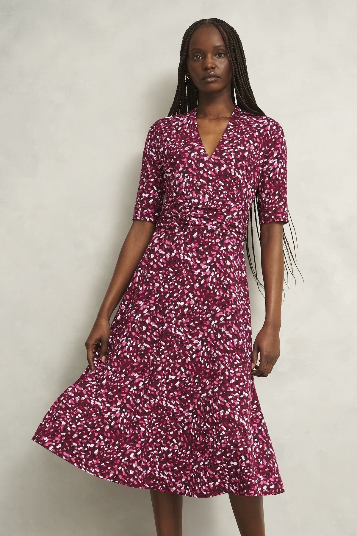 The Hobbs London Wine Jersey Print Dress is made from jersey.