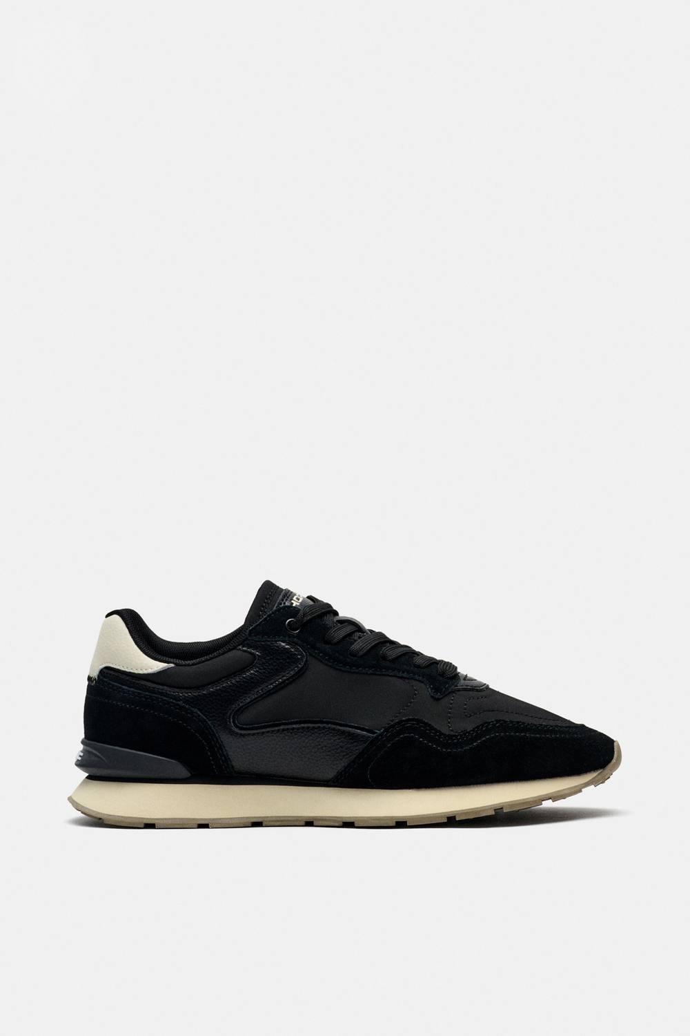 Stylish Hoff City trainers in black with a mixed-material upper featuring suede overlays. Contrast heel tab detail adds visual interest. Classic lace-up fastening with reinforced eyelets ensures durability. The cushioned midsole provides excellent comfort for all-day wear. Textured rubber outsole offers reliable traction.