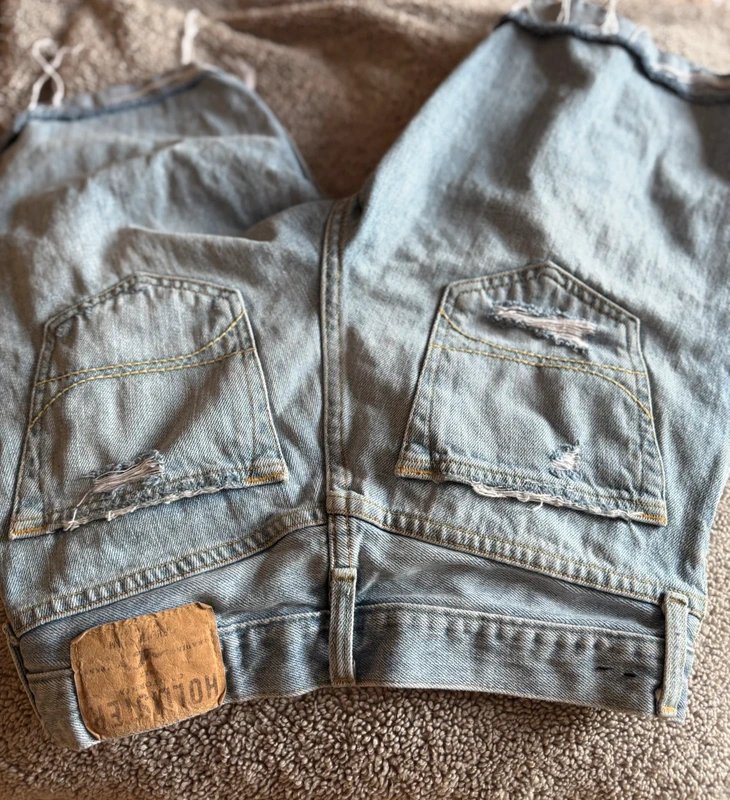The Hollister Blue Denim Rip Shorts is available in sizes M.