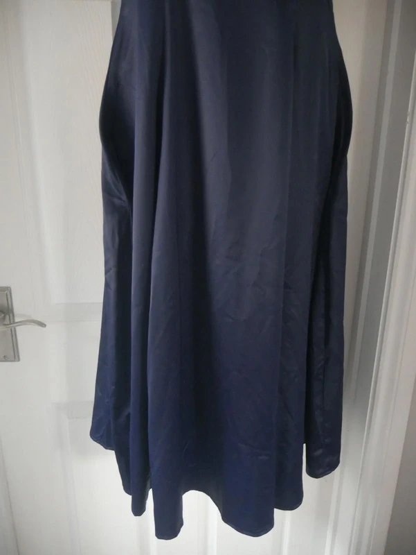 This stunning navy blue princess style prom ballgown by Honeyz is lined with soft satin fabric, featuring a round neckline and zip closure. Ideal for prom queens, bridesmaids, and formal events, this midi-length gown boasts a shimmering effect and a netted underskirt to maintain its shape.