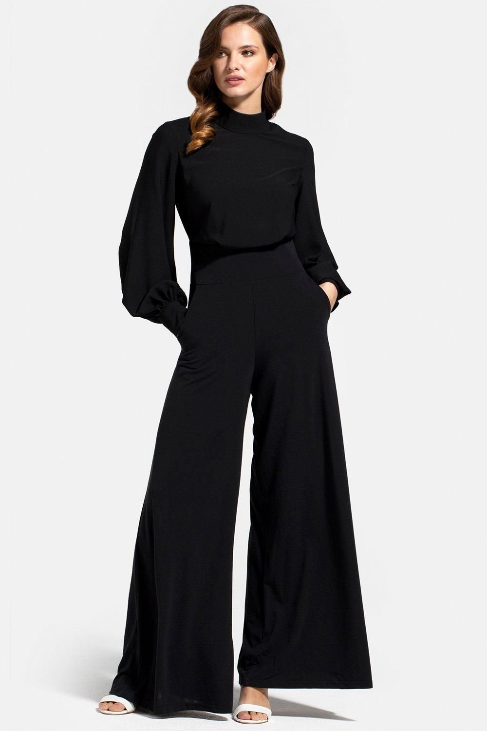 The Hot Squash Black Wideleg Jumpsuit with Blouson Sleeve is ideal for evening, party, date-night.