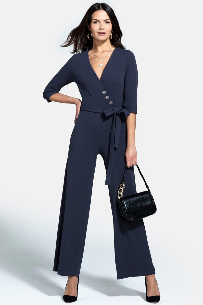 The Hot Squash Dark Grey Scuba Jumpsuit with Buttons is ideal for work, professional, business.