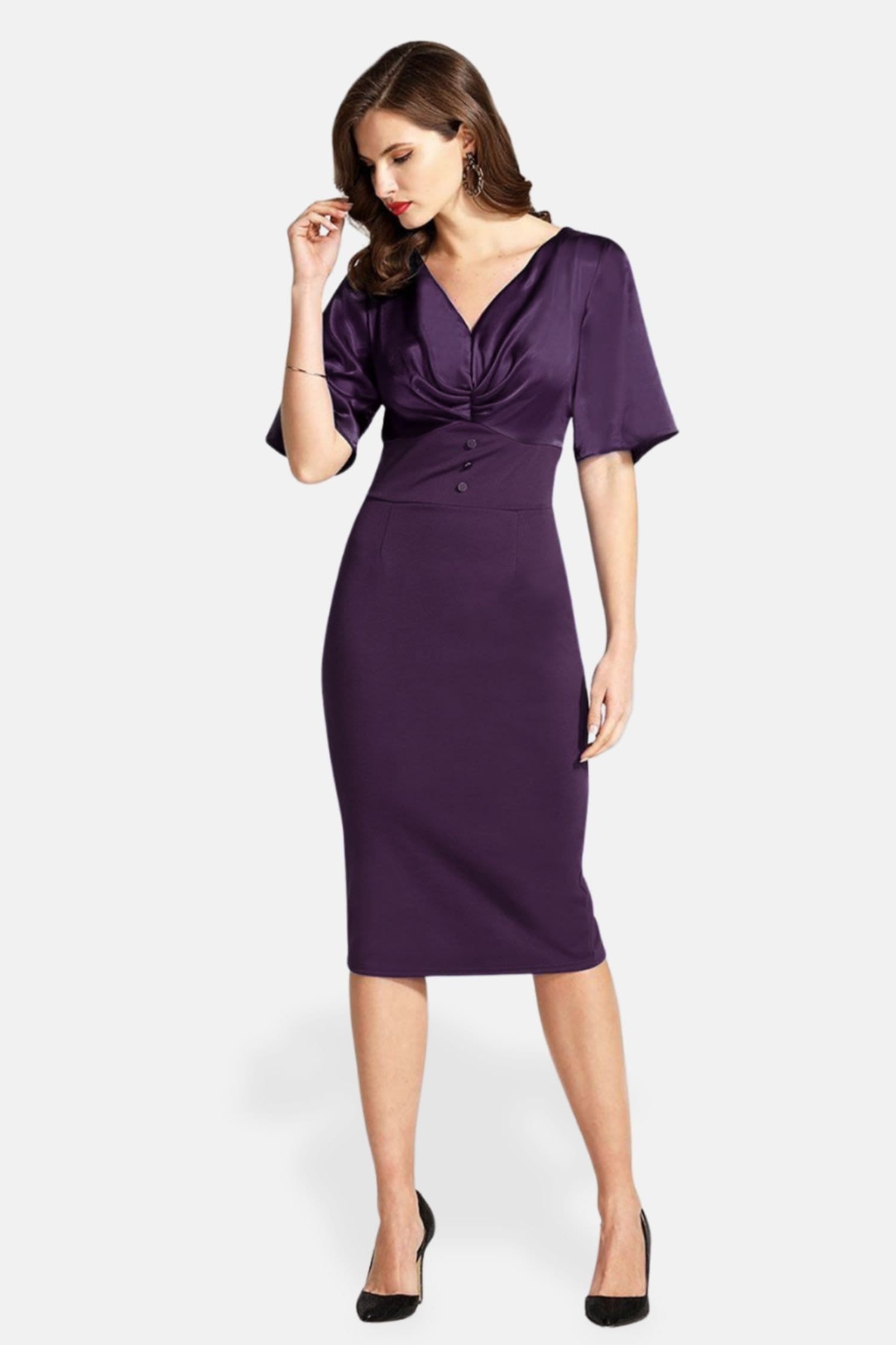 “Pair with black stiletto heels and a clutch bag for evening events.”