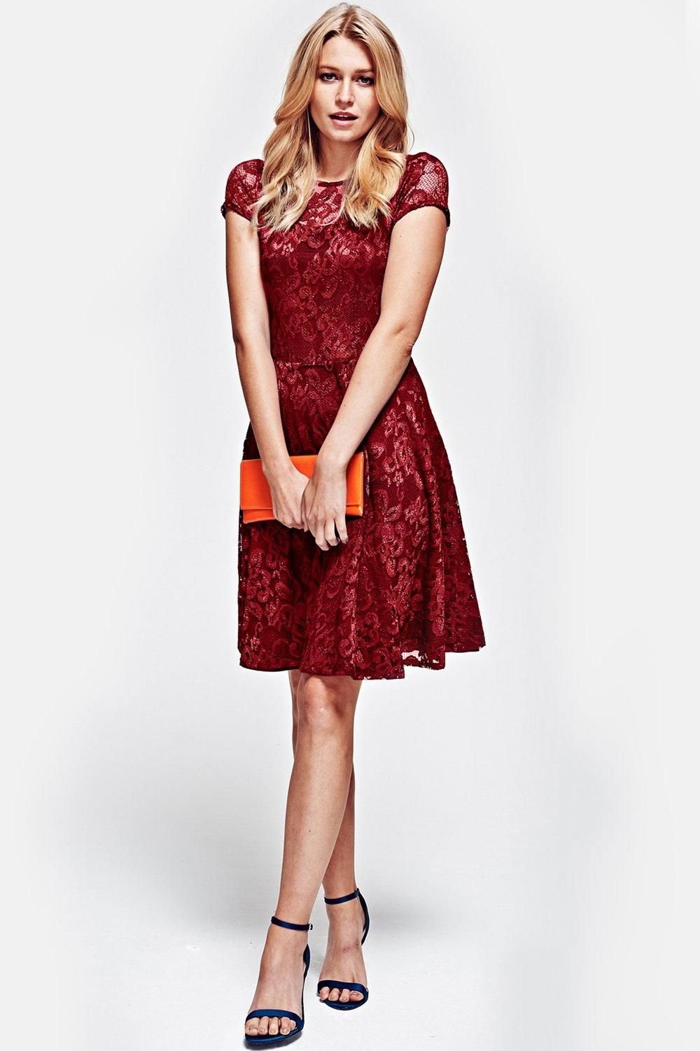 The Hot Squash Red Lace Fit n Flare Dress is available in sizes 14, 16, 18.