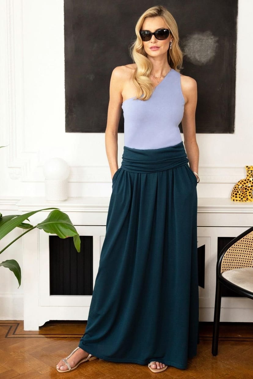 The Hot Squash Teal Jersey Roll Top Maxi Skirt is made from jersey.