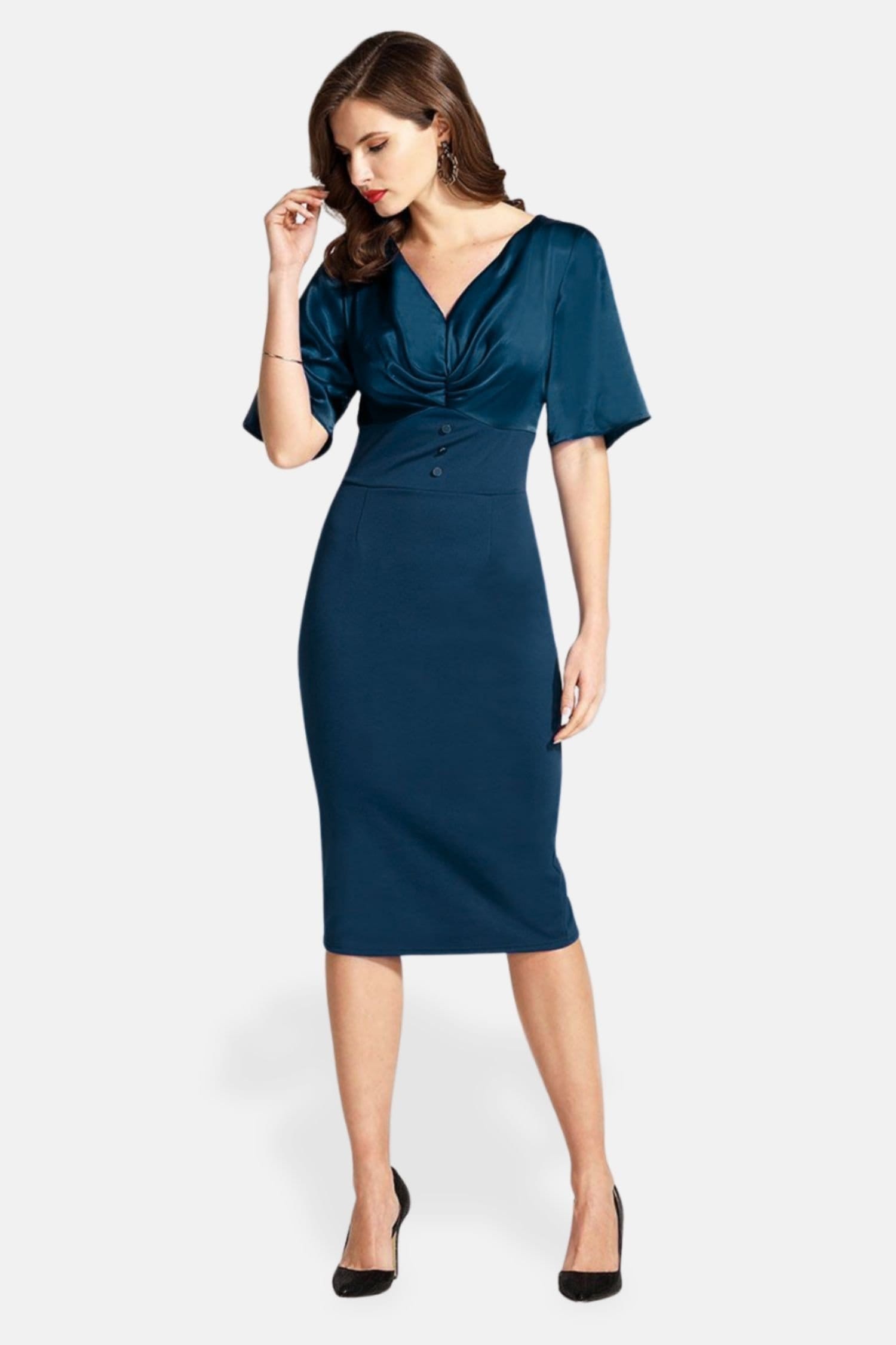 “Pair with black stiletto heels and a clutch bag for evening events.”