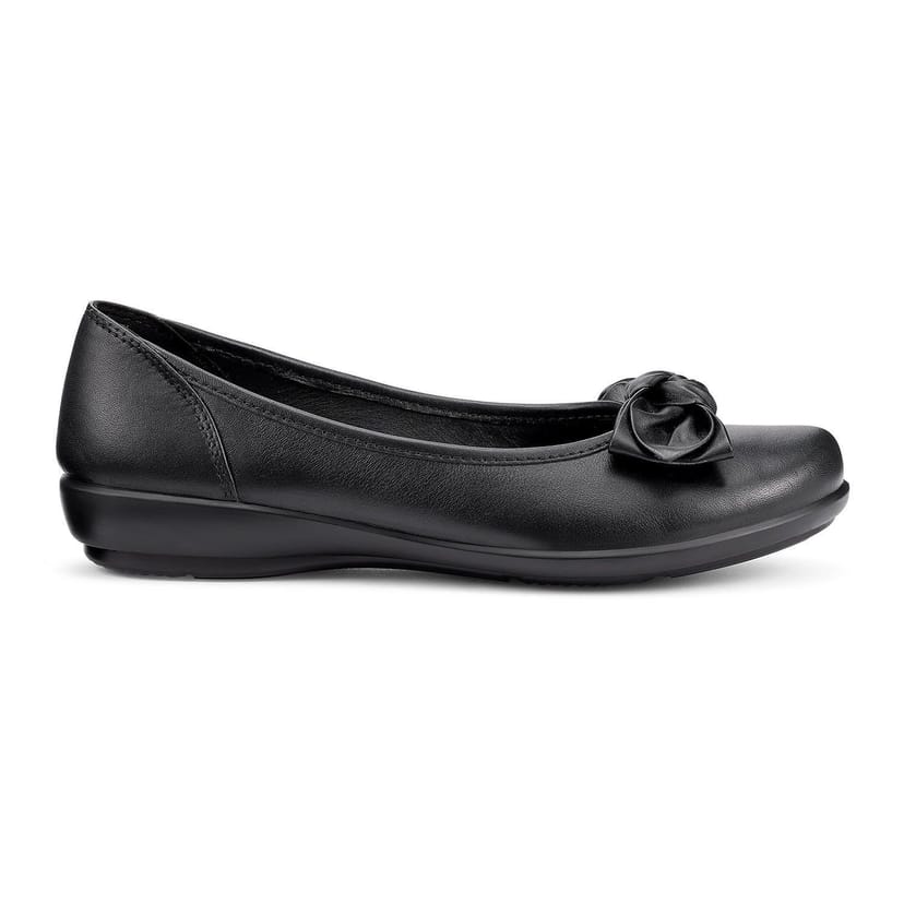 The Hotter Women's Extra Wide 'Jewel' Ballerina Pumps in Black is available in sizes 4, 4.5, 5, 5.5, 6, 6.5, 7, 7.5, 8, 9.