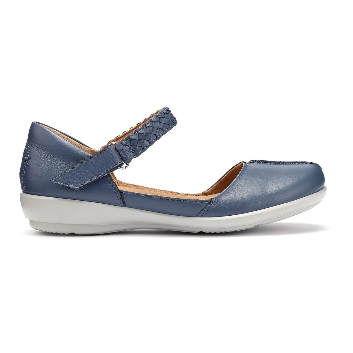 View Debenhams's returns policyStep into comfort with these Hotter Lake Mary Janes. Featuring a breathable design with a leather-covered OrthoLite foam insole for underfoot cushioning and Cushion+ for energy return. The sandal-inspired casual shoe has a covered toe and padded heel for support, finished with stylish stitch detailing.