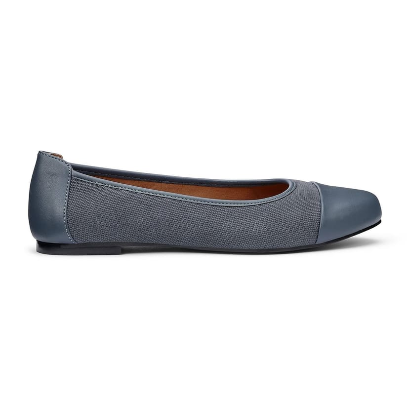 Timeless ballerina pumps in Mid Blue featuring a slim, elegant sole and textured textile uppers. Ideal for all-day comfort with soft linings and leather trim.
