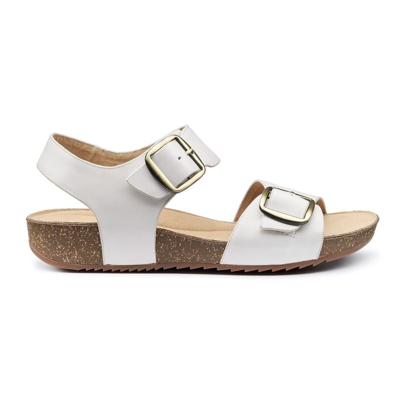 The Hotter Women's Wide Fit 'Tourist II' Off-White Sandals is available in sizes 4, 4.5, 5, 5.5, 6, 6.5, 7, 7.5, 8, 9.