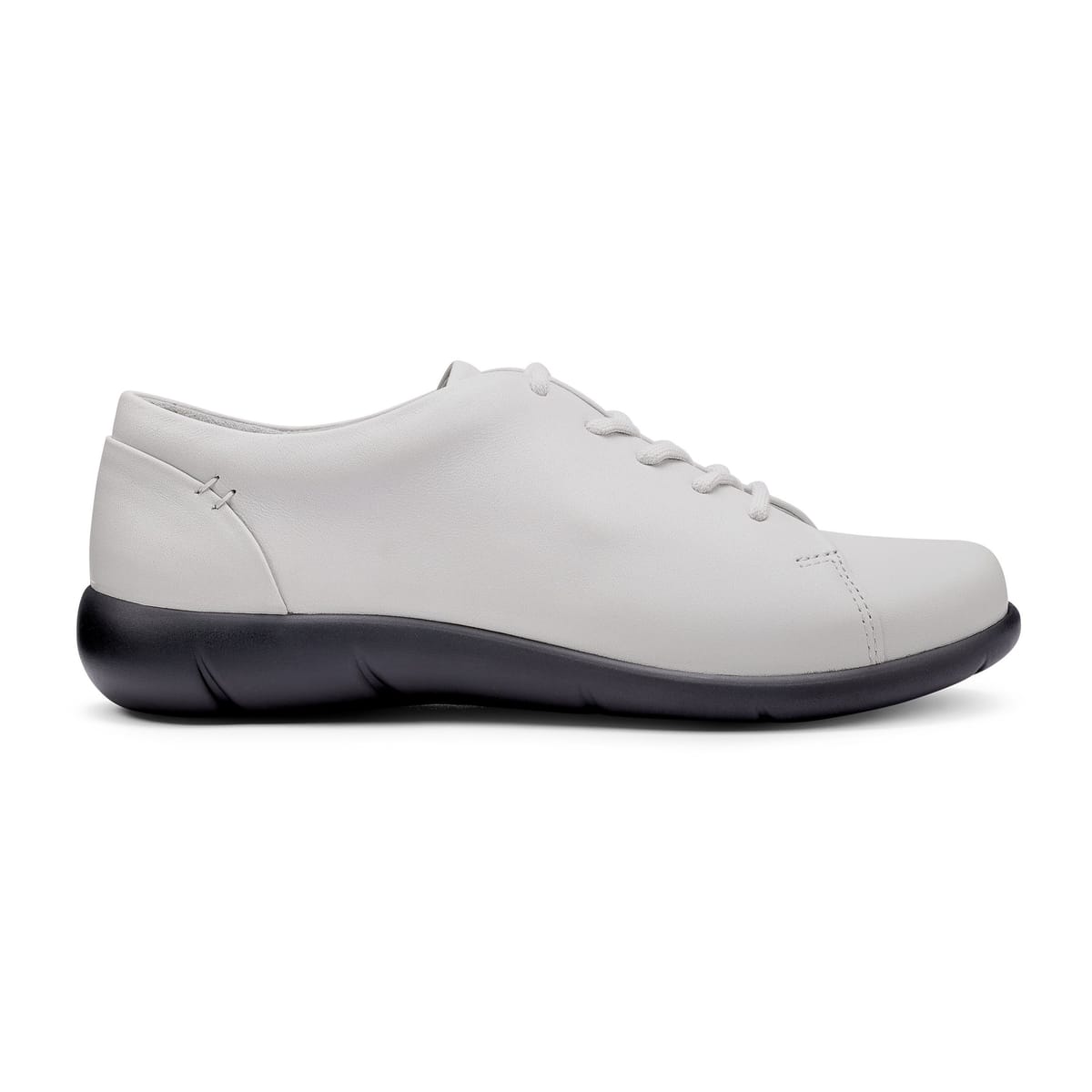 The Hotter Women's Extra Wide 'Dew II' Casual Lace-Ups in Pale Grey is made from leather, rubber.