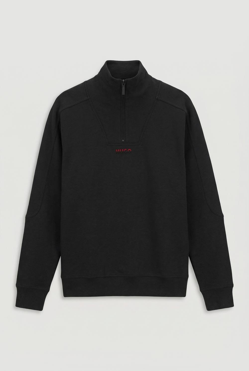 Contemporary half-zip sweatshirt in black with a stand collar and ribbed cuffs and hem for a snug fit. Subtle Hugo branding adds a touch of sophistication. Made from cotton for breathable comfort.