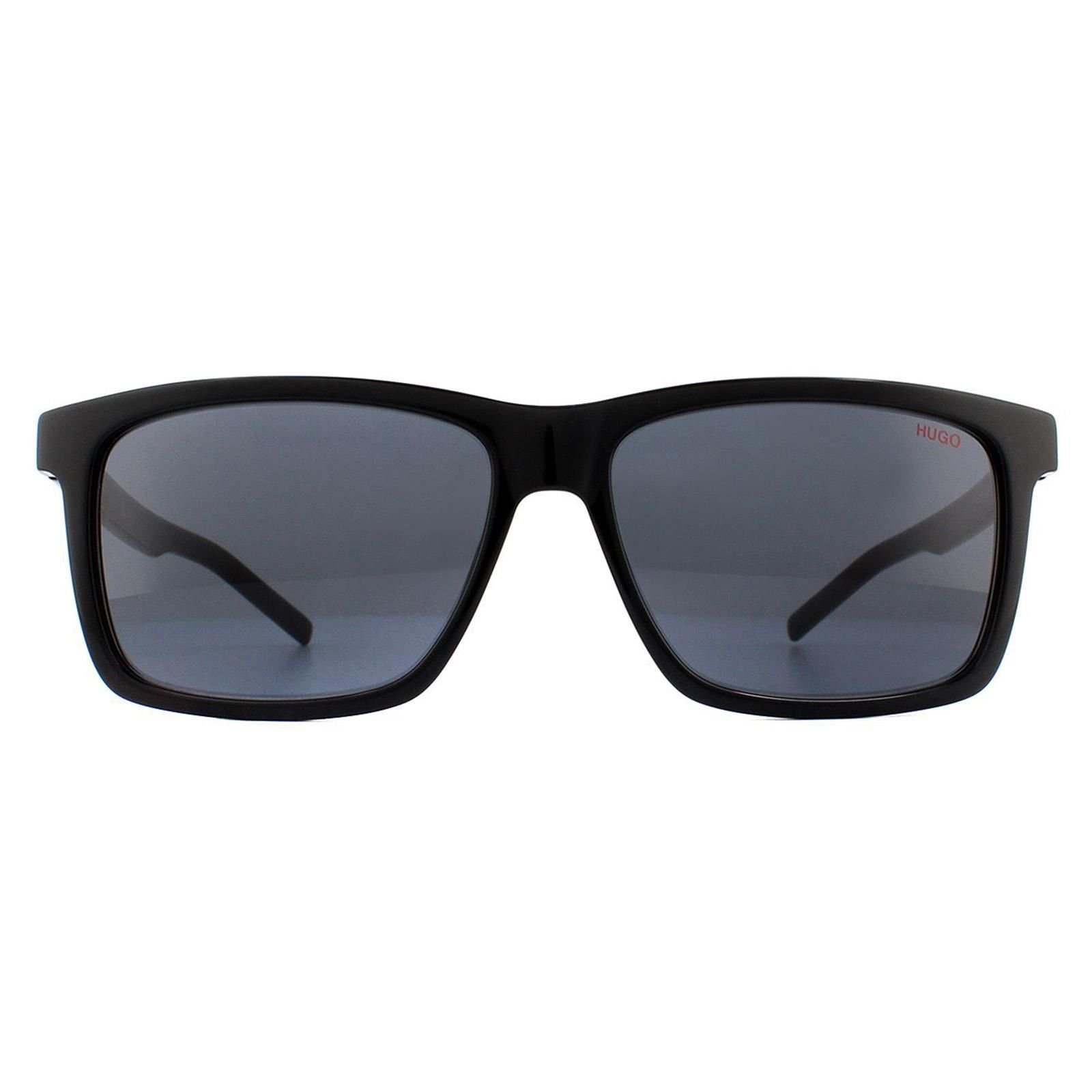 Timeless classic rectangle sunglasses in black with grey lenses. Featuring the HUGO logo on the temples and left lens.
