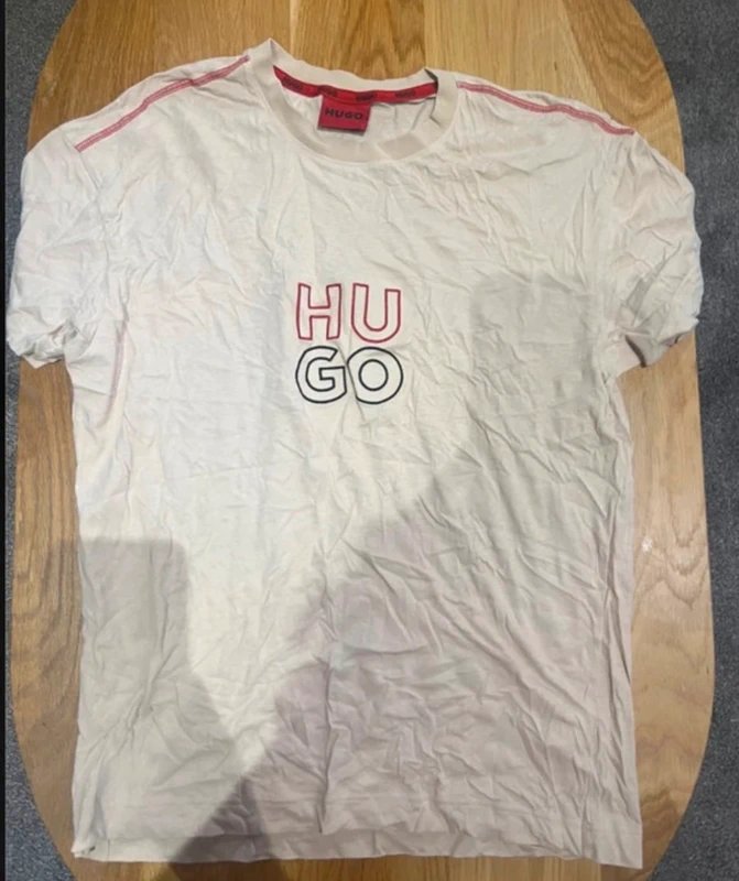 The Hugo Boss Oversized T-Shirt with Logo Print in Beige is available in sizes M.