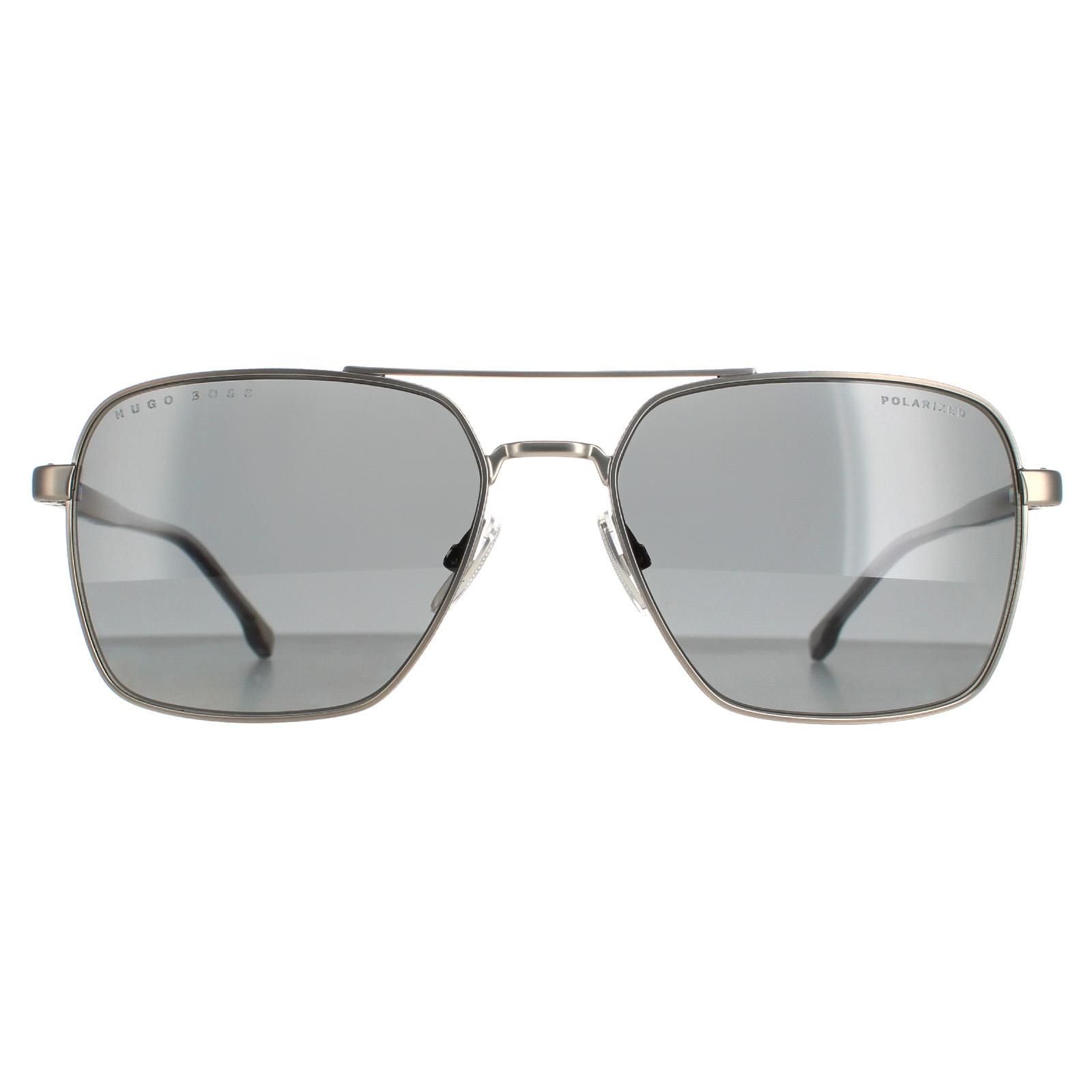 The Hugo Boss Men's Aviator Matte Ruthenium Grey Polarized Sunglasses is available in sizes ONE SIZE.