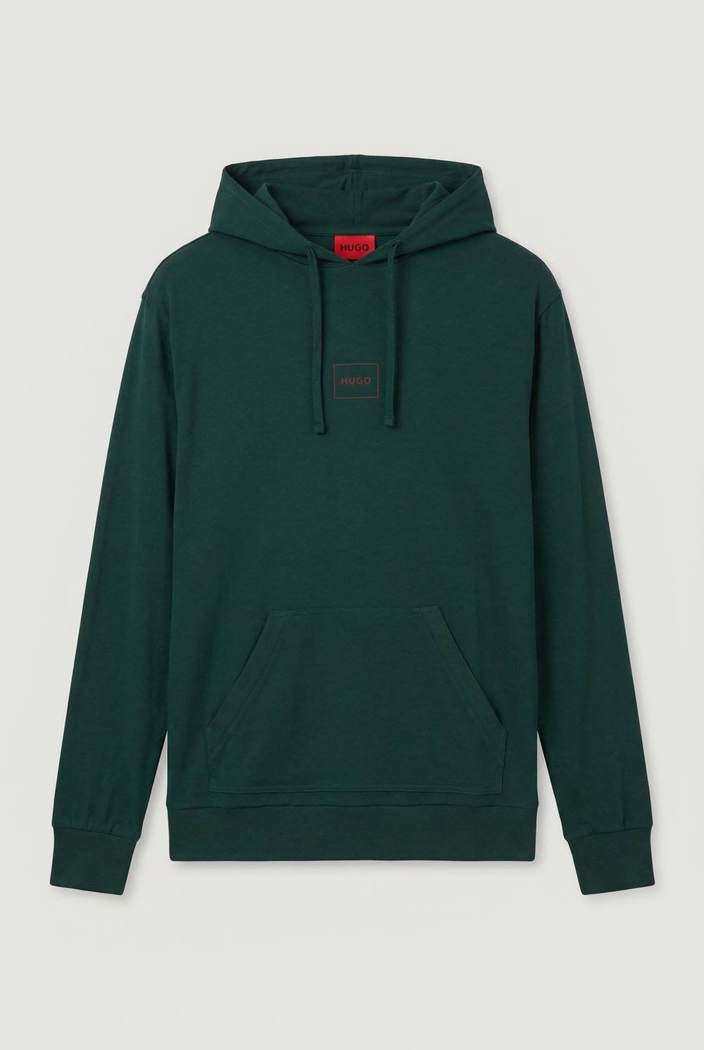 Stylish green hoodie with a signature Hugo logo patch on the chest. Made from soft cotton-rich fabric with stretch for comfort. Features a spacious hood, ribbed cuffs and hem, and a front pouch pocket. Ideal for casual wear.