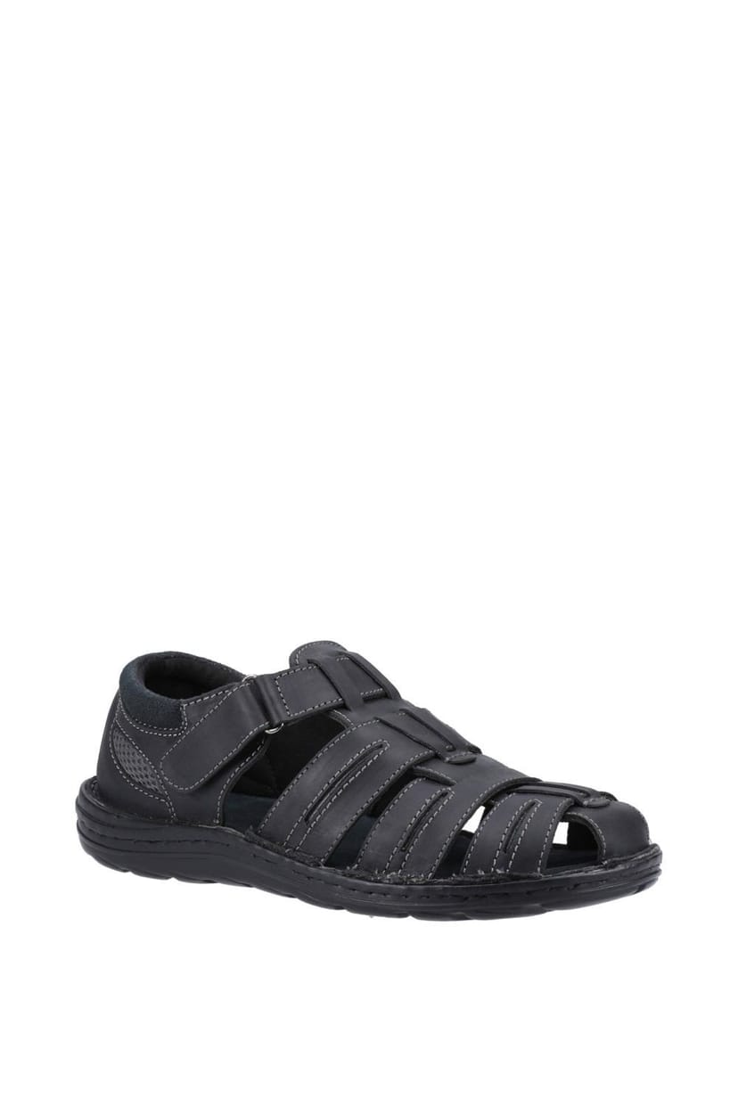 Classic black leather fisherman sandal with a real leather upper and touch fastening. Features a padded suede collar for comfort and a lightweight PU sole. Perfect for summer days outdoors.