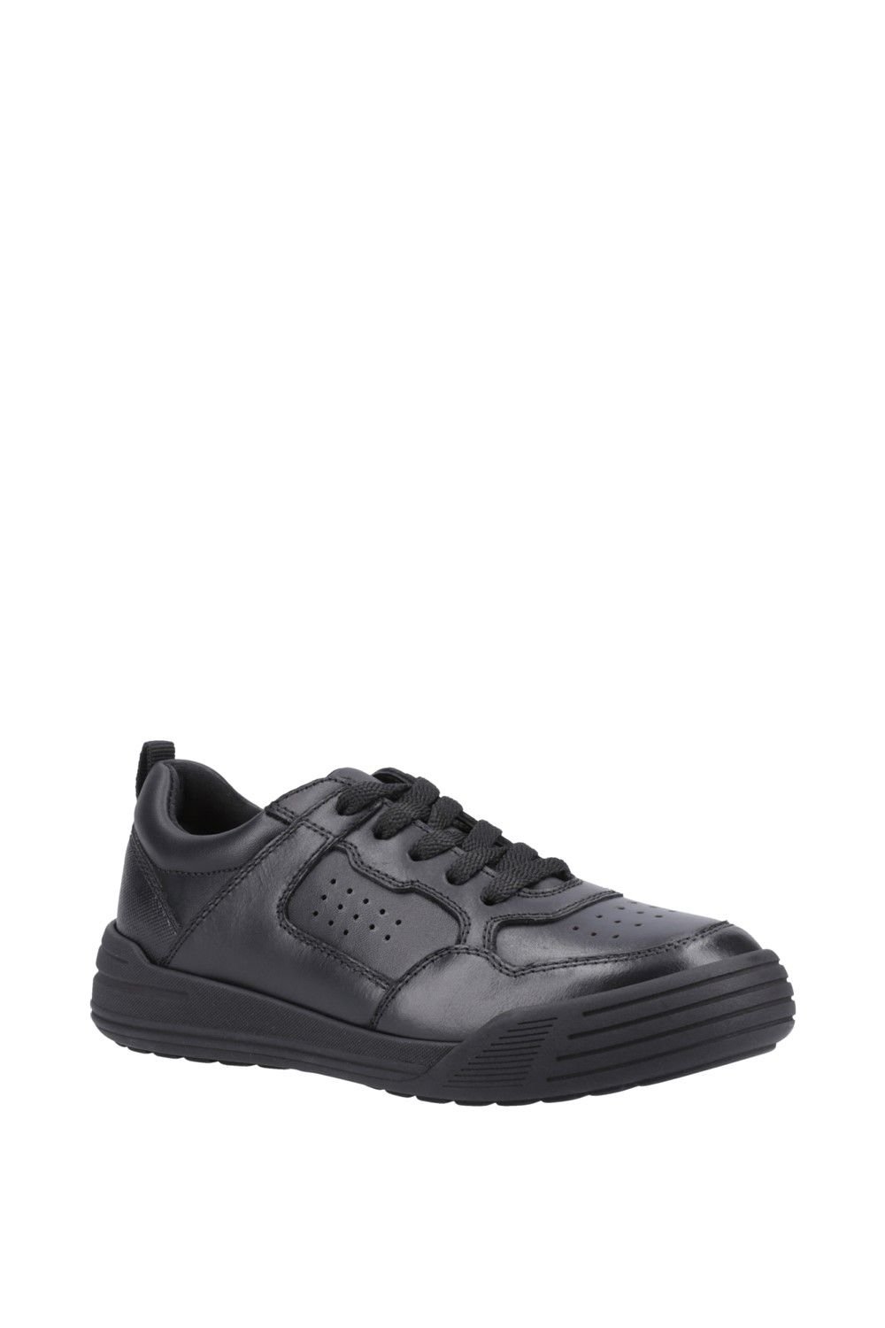 Classic Hush Puppies Shane Senior Shoe in black leather with a lace-up fastening for a secure fit. Features a durable outsole and padded collar for added comfort. Ideal for everyday wear.