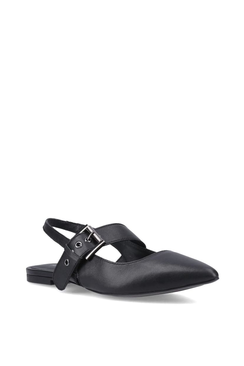 Elegant black leather Mary Jane shoes with a pointed toe and buckle strap. Designed for all-day comfort and a timeless look.