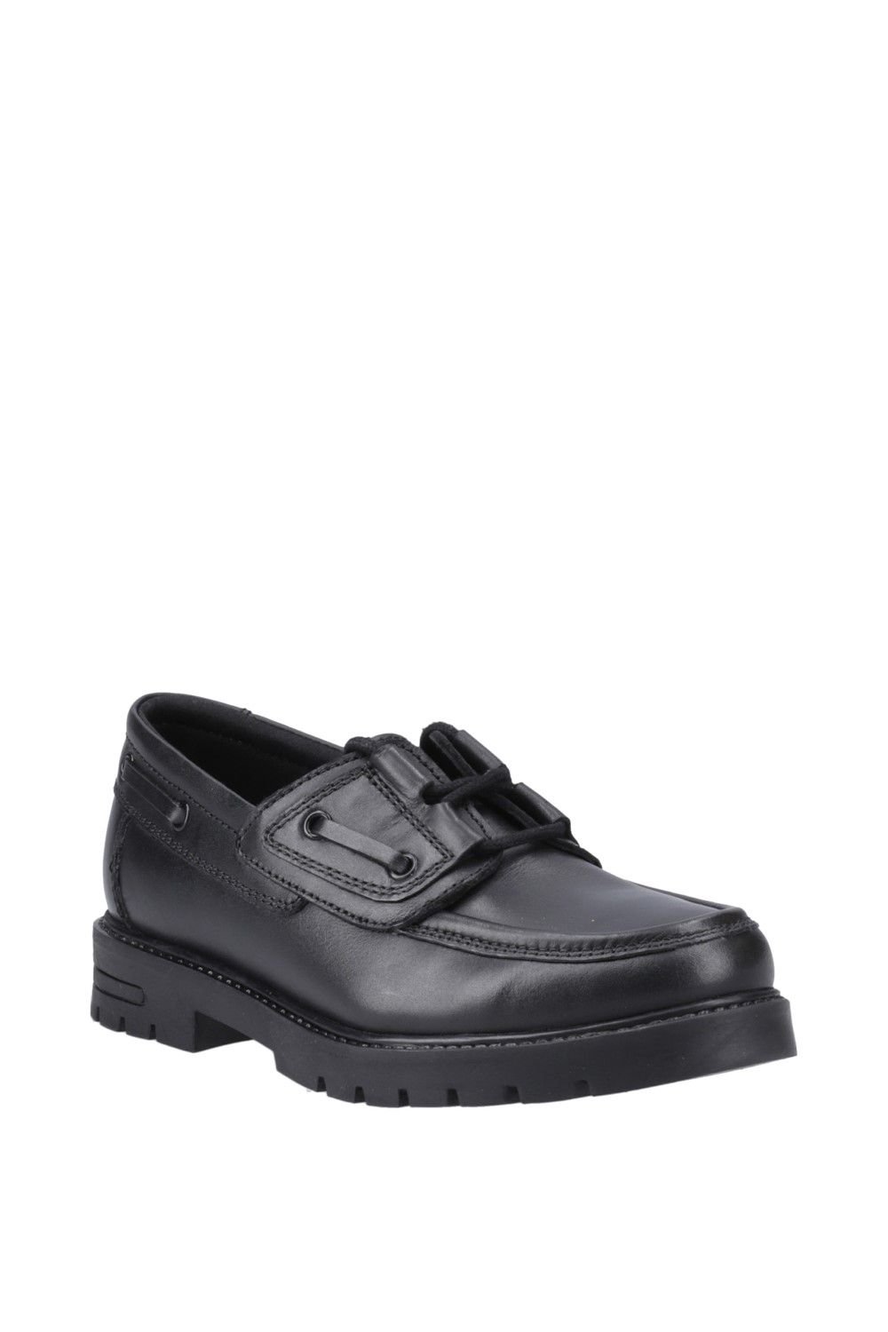 Classic black leather school shoe with a chunky sole and lace details. Designed for comfort and durability, featuring the Custom Fit system with three different width insoles.