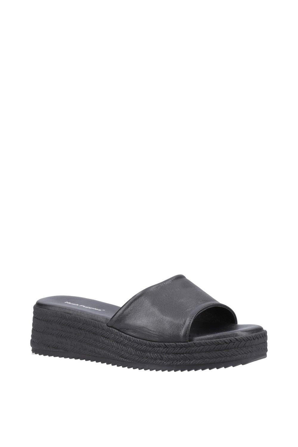 The Hush Puppies Women's 'Robin' Black Leather Sandal is made from leather.