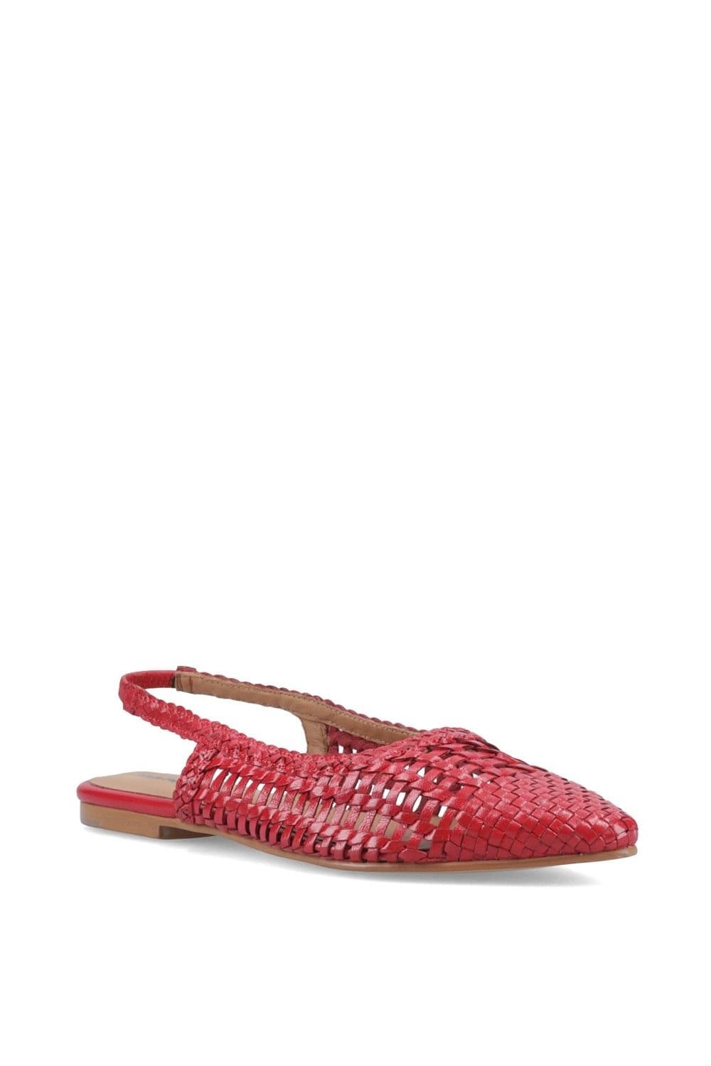 Chic red leather slingback ballerinas with a woven design and memory form insole for all-day comfort. Perfect for summer wear.