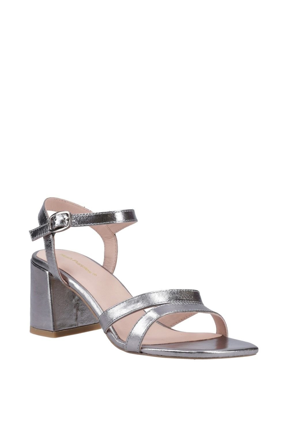 The Hush Puppies Women's Nalani Heel in Silver is available in sizes 4, 5, 6, 7.