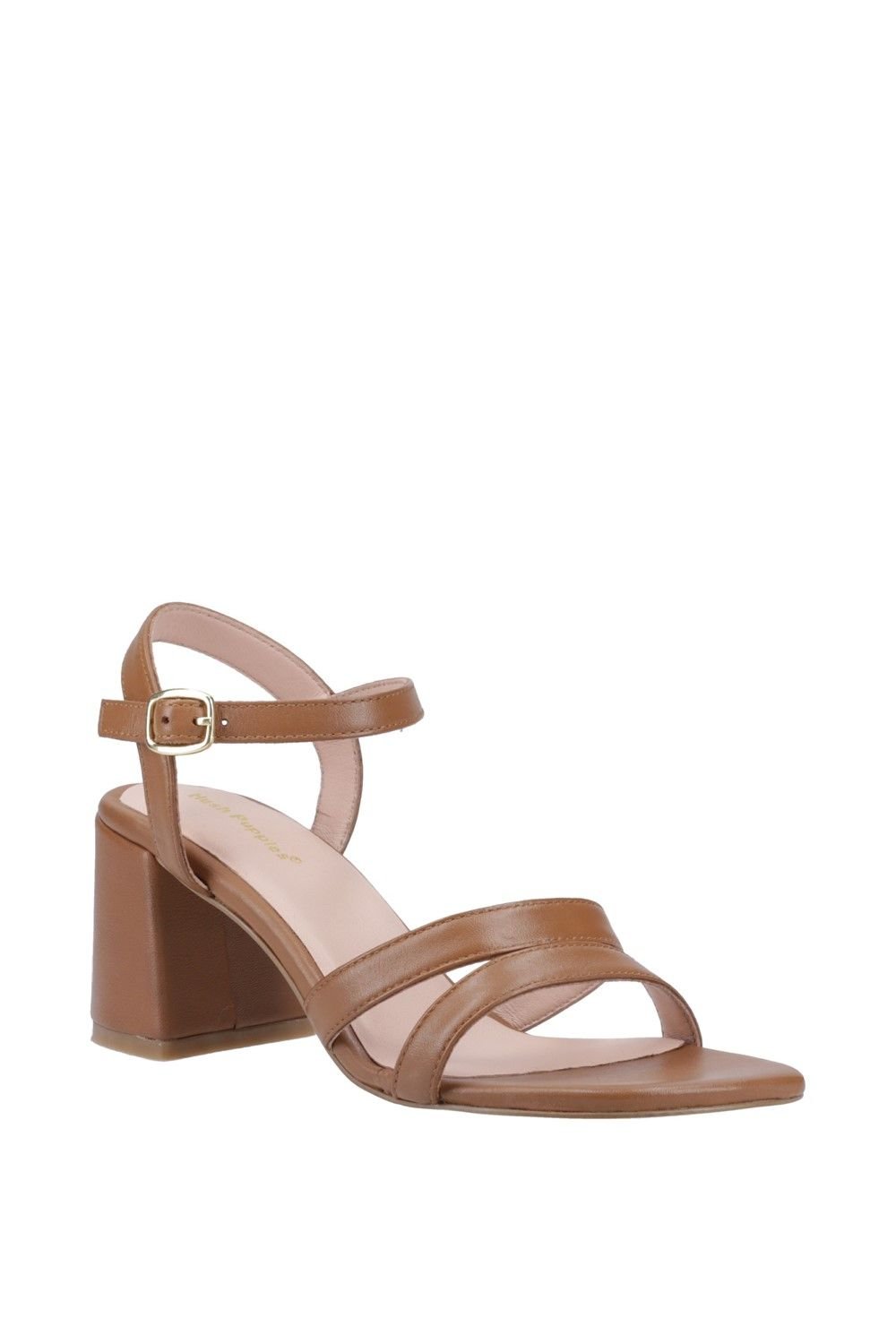 The Hush Puppies Tan Leather Heel Sandals is available in sizes 4, 5, 6, 7.