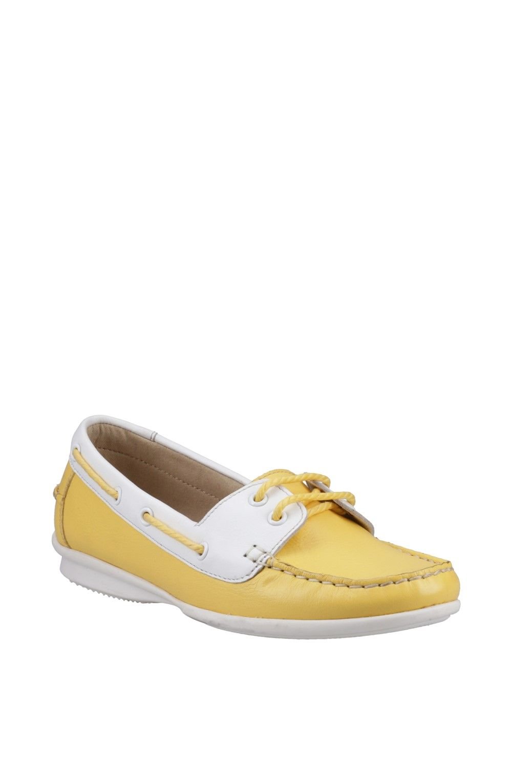 Classic yellow boat shoe with a real leather upper and adjustable lace-up fastening. Features a textile sock and lining for comfort, and a flexible outsole for all-day wear.