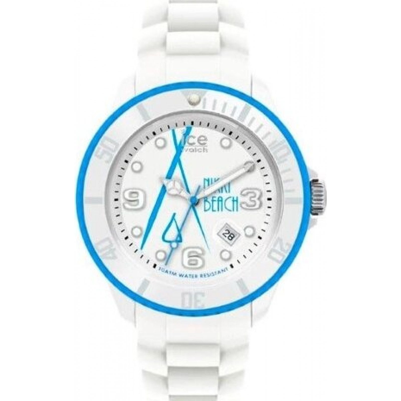 Stylish Ice-Watch men's watch with a white silicone strap and blue accents. Features a quartz movement and water resistance up to 100 meters. Ideal for casual and active lifestyles.