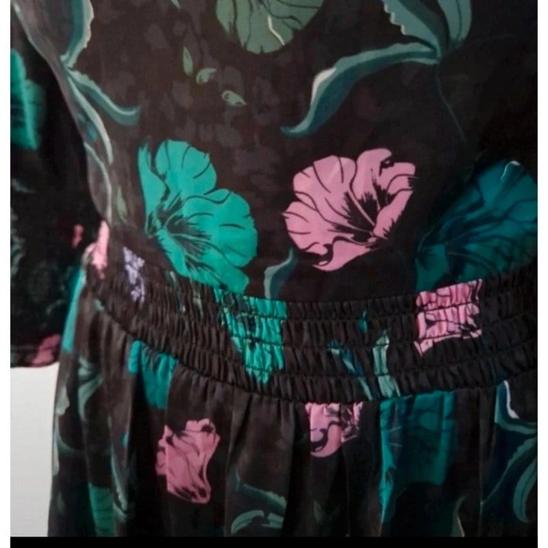 The IKKS Floral Silk Effect Maxi Dress in Black and Multi is made from silk, polyester.