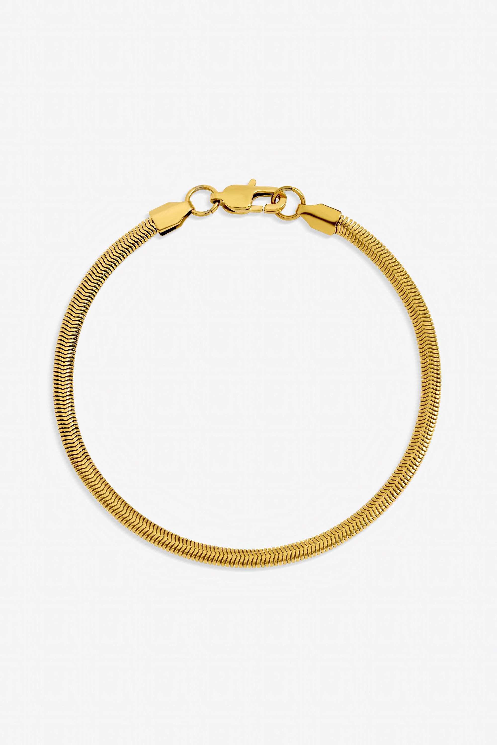 Sleek and durable gold-plated snake chain bracelet designed for active lifestyles. Its minimalist design adds a bold, contemporary edge to any outfit.