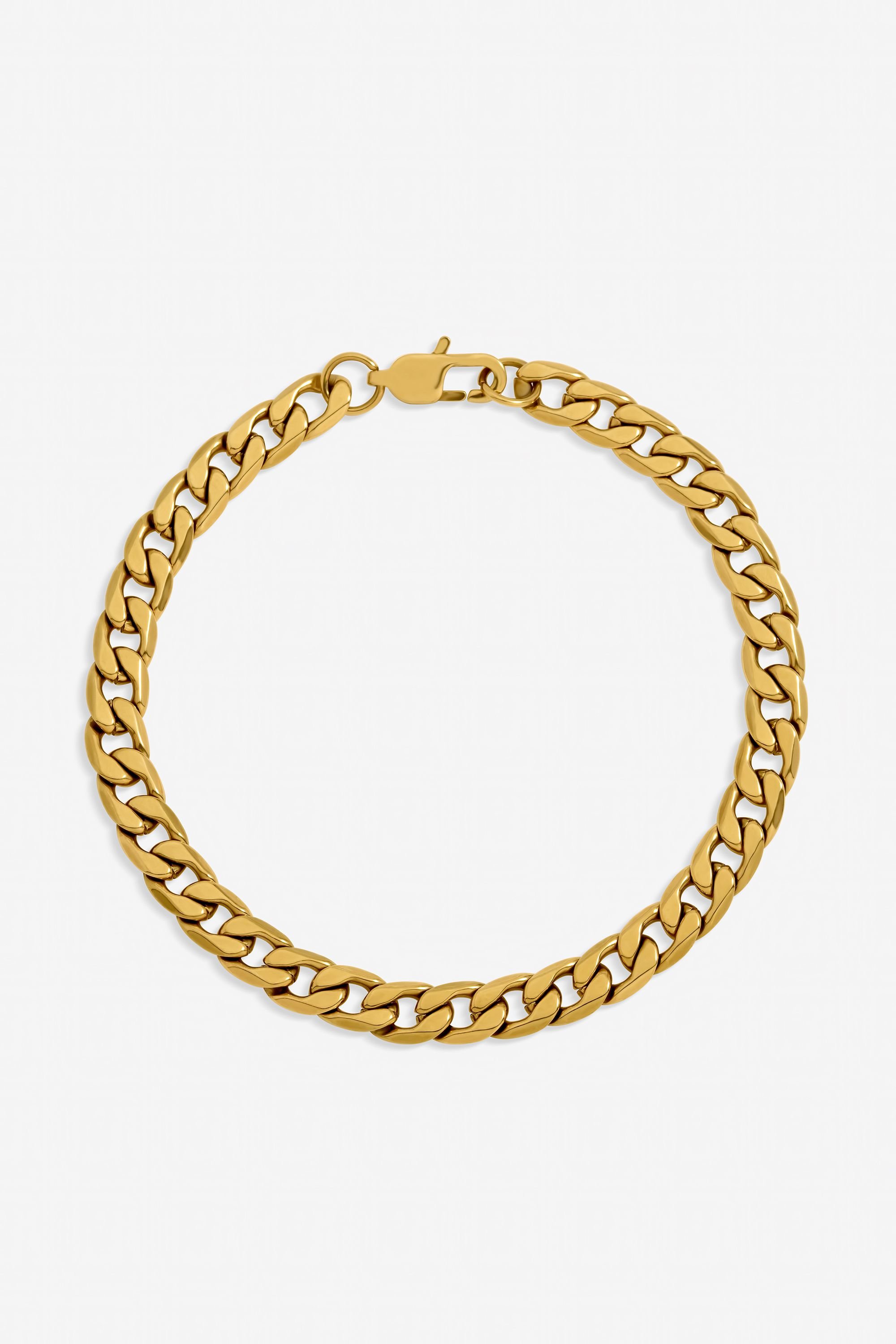 Sleek and durable gold-plated curb chain bracelet by Inicio. Designed for active lifestyles, this minimalist accessory adds a bold, contemporary edge to any outfit.
