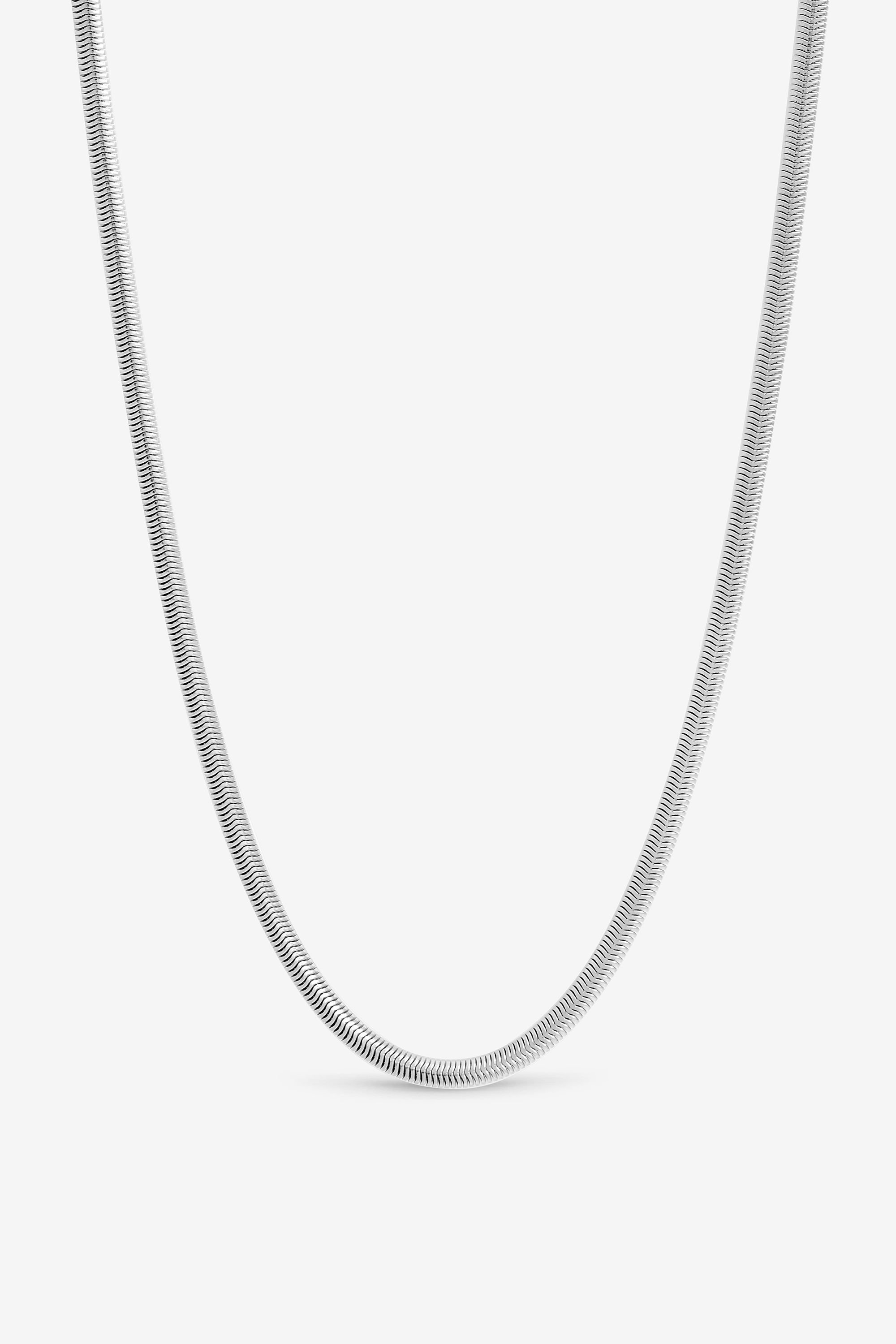 Sleek and durable Inicio Men's Steel Waterproof Snake Chain Necklace in silver. Designed for active lifestyles, this minimalist accessory adds a bold, contemporary edge to any outfit.